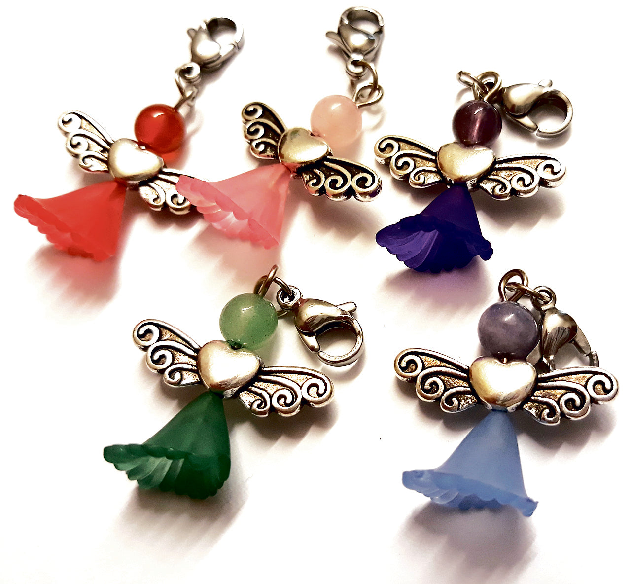 5 Herzengel mit je einem Köpfchen aus Rosenquarz, Amethyst, Aventurin, Karneol und Quarzit um insgesamt nur €12,50