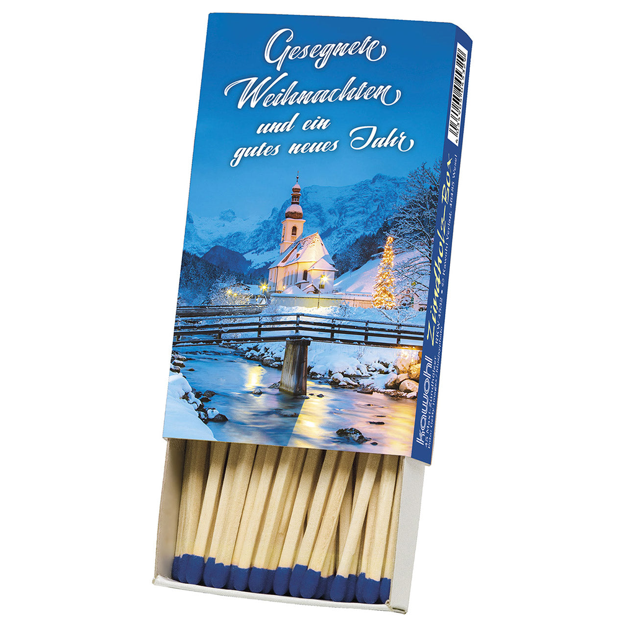 Nicht viel mehr als ein Billet kosten diese Zündholzboxen mit 45 Maxizündhölzern zum Kaminanzünden. So begleitet einen der Weihnachtsgruß über längere Zeit am Kaminsims
